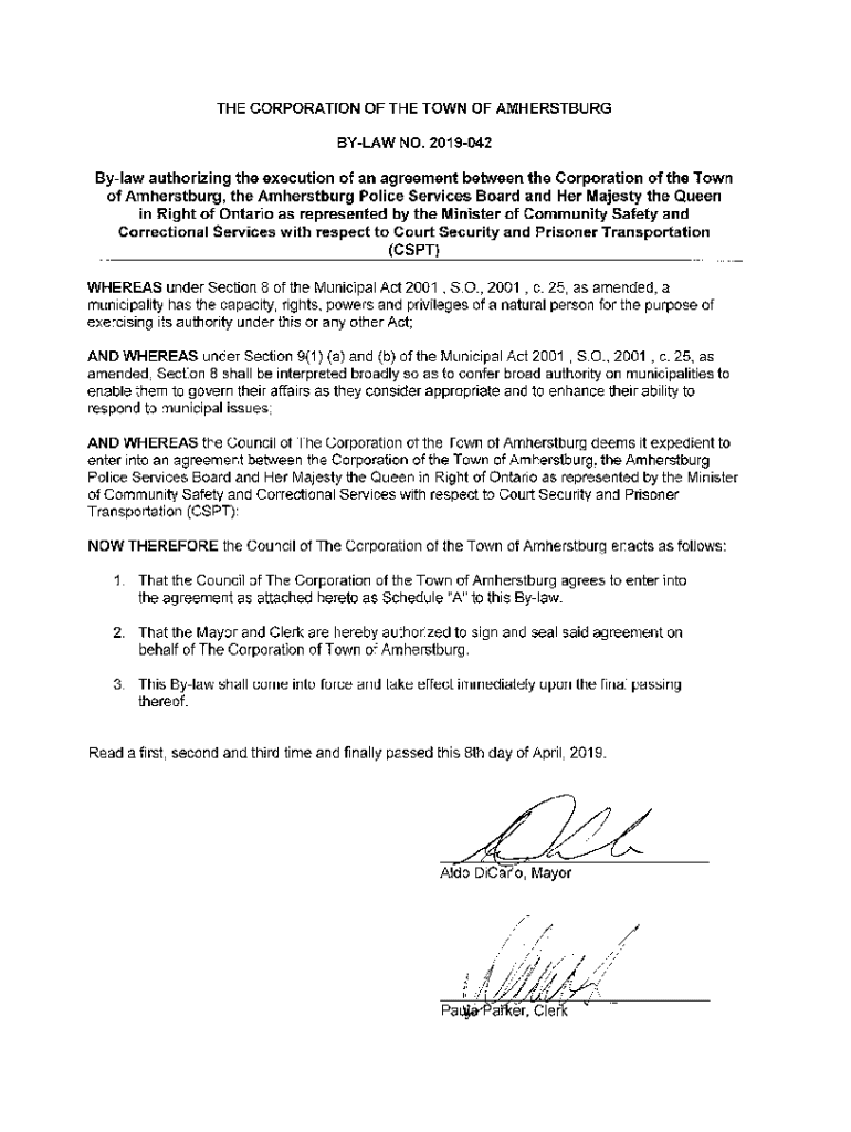 THE CORPORATION OF THE TOWN OF AMHERSTBURG