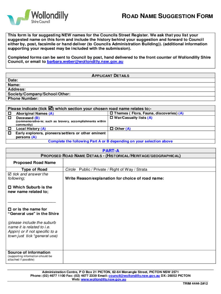 This form is for suggesting NEW names for the Councils Street Register. We ask that you list your