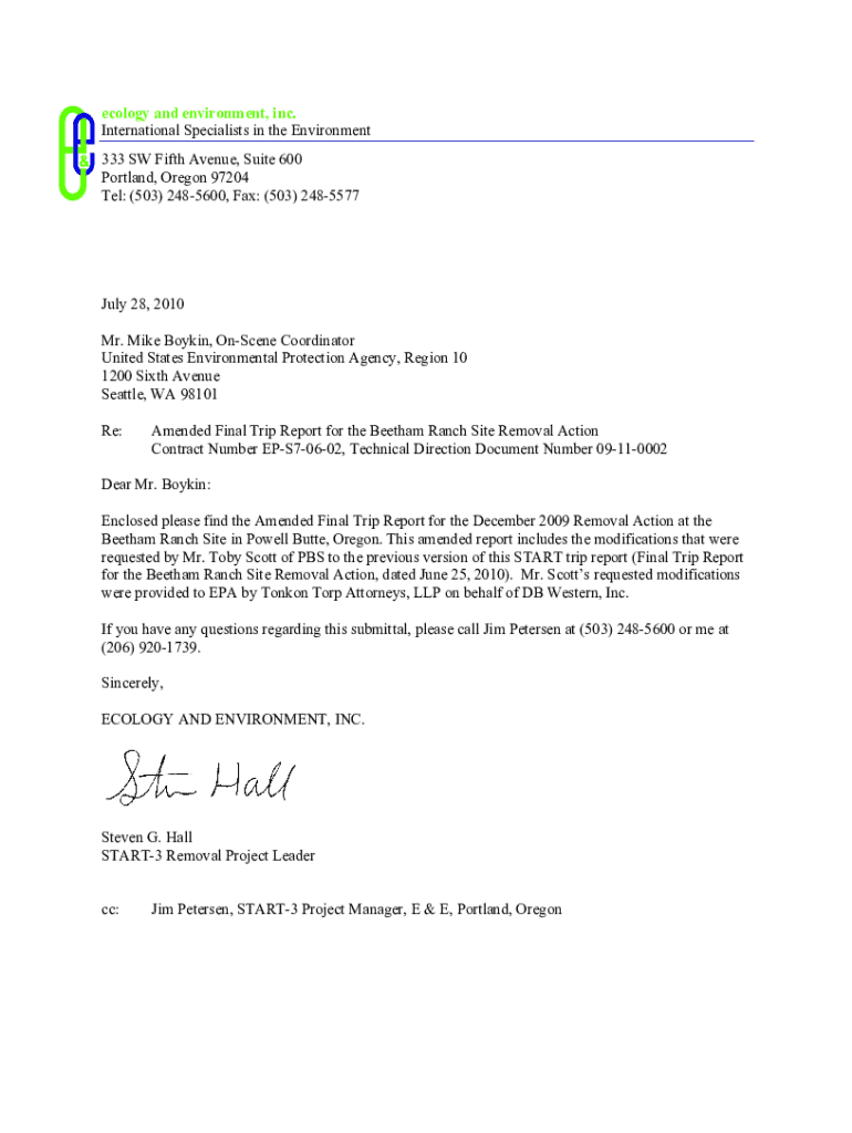 Ecology and environment, inc. International Specialists in the Environment 333 SW Fifth Avenue, Suite 600 Portland, Oregon 97204 Tel: (503) 2485600, Fax: (503) 2485577July 28, 2010 Mr. Mike Bodkin,
