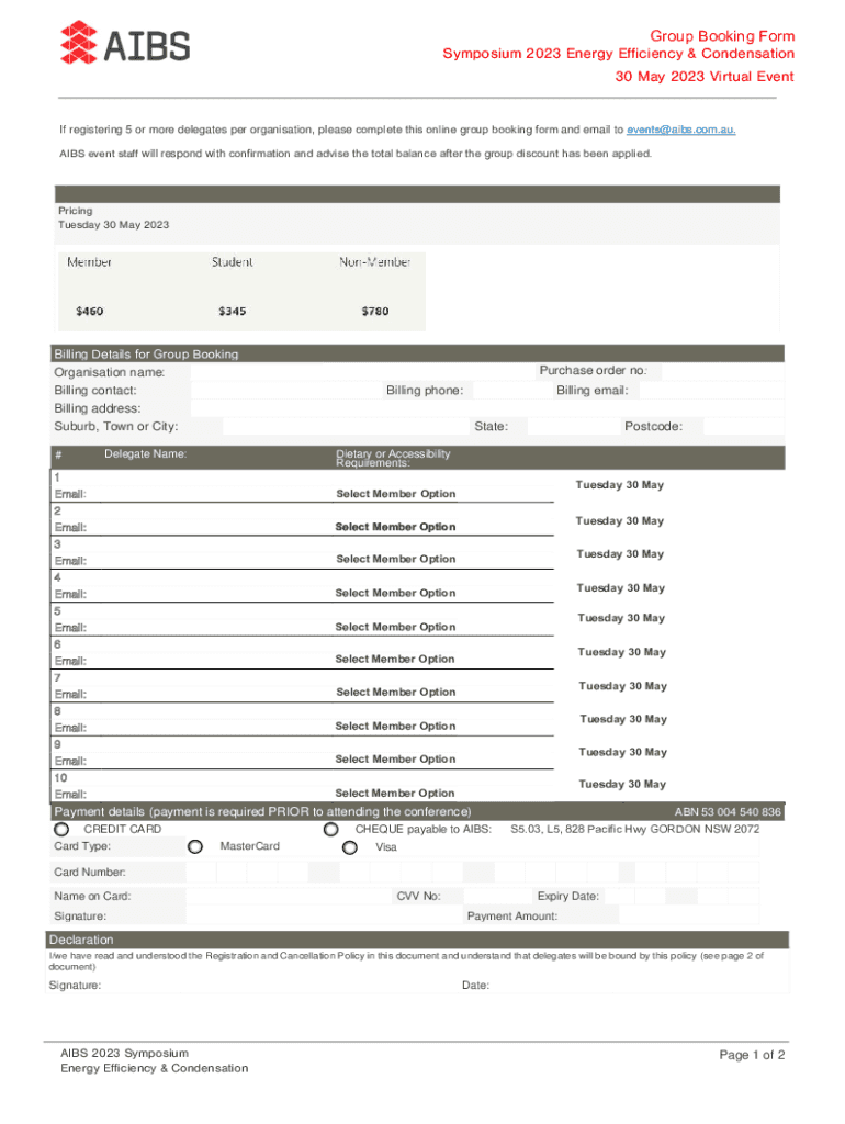 Group Booking Form Symposium 2023 Energy Efficiency & Condensation 30 May 2024 Virtual Eventim registering 5 or more delegates per organization, please complete this online group booking form and