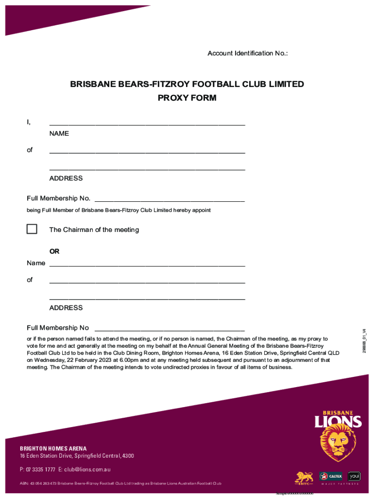 Account Identification No.:BRISBANE BEARSFITZROY FOOTBALL CLUB LIMITED