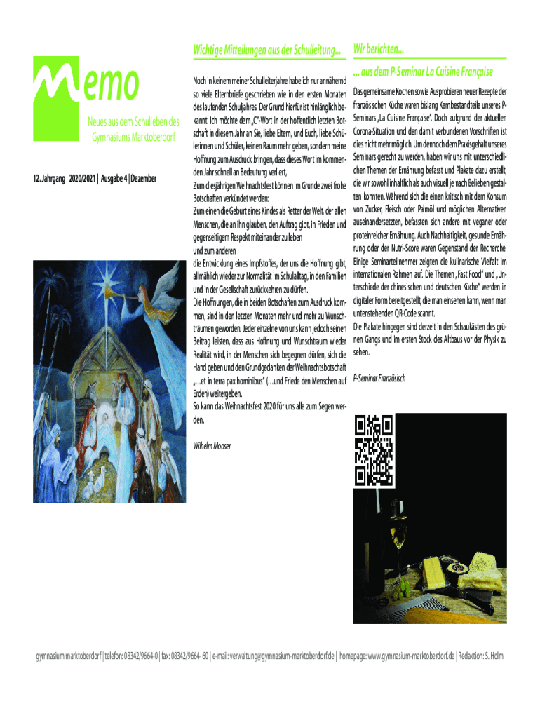 Gymnasiums Marktoberdorf12. Jahrgang | 2020/2021 | Ausgabe 4 | DezemberWichtige Mitteilungen aus der Schulleitung...