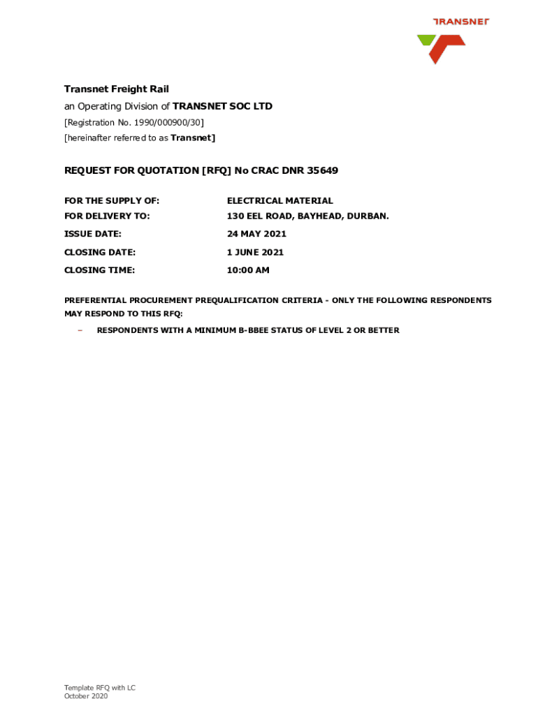 [hereinafter referred to as Transnet]REQUEST FOR QUOTATION [RFQ] No CRAC DNR 35649