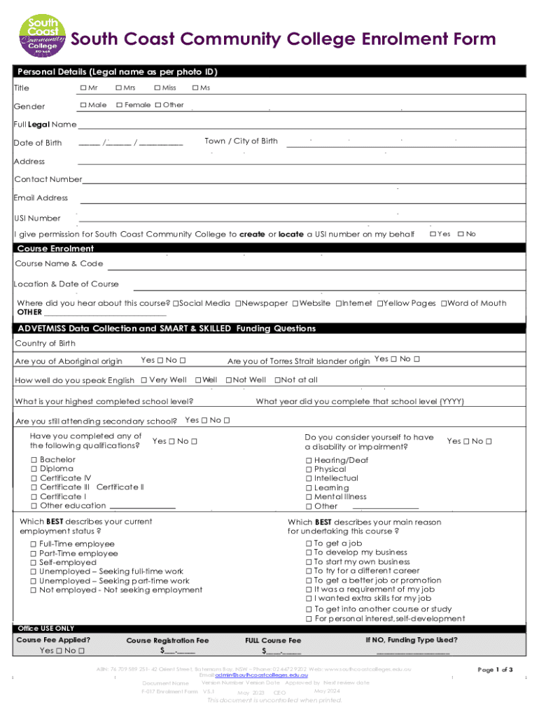 South Coast Community College is not the form you're looking for?Search for another form here.