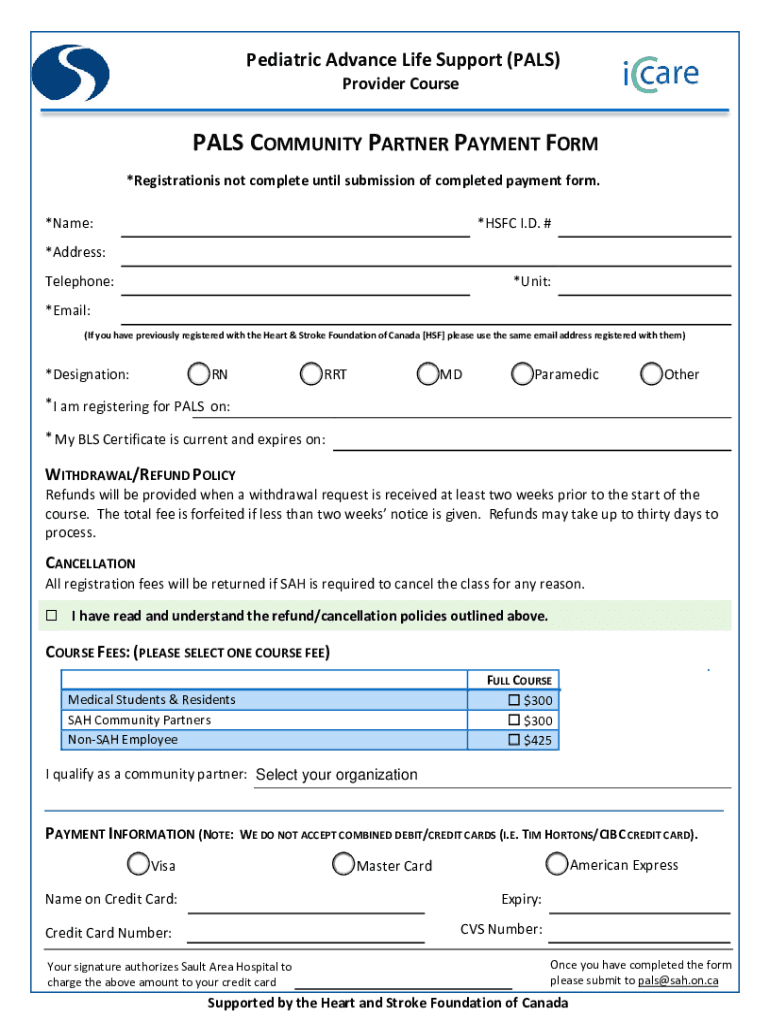 Get the free PALS COMMUNITY PARTNER PAYMENT FORM