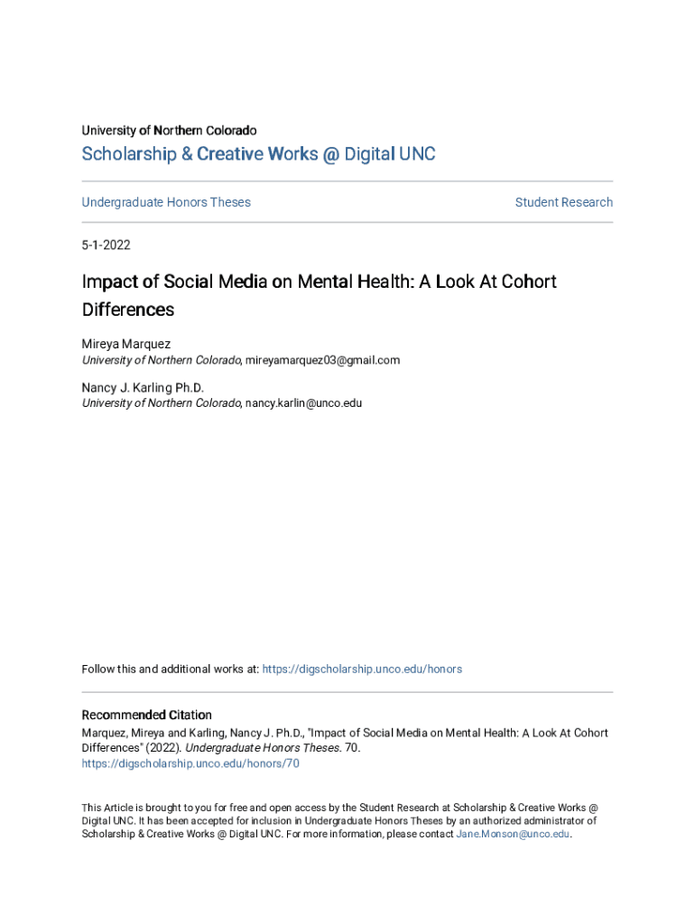 Get the free Impact of Social Media on Mental Health: A Look At Cohort Differences - digscholarsh...