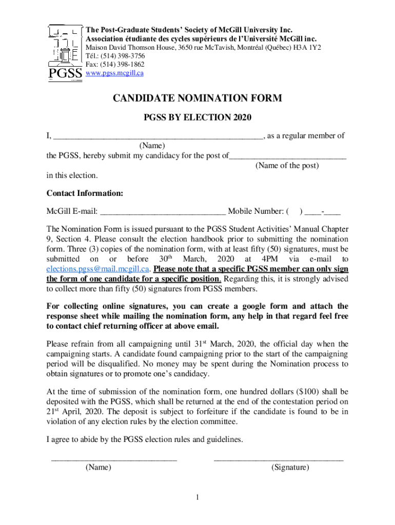 Get the free BY-ELECTION EXPENSE FORM - McGill University - pgss mcgill