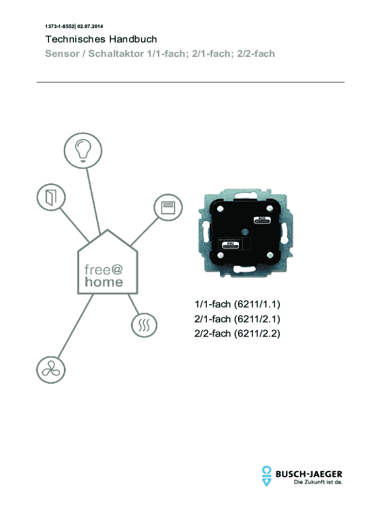 13731855202.07.2014Technisches Handbuch Sensor / Schaltaktor 1/1fach; 2/1fach; 2/2fach1/1fach (6211/1.1) 2/1fach (6211/2.1) 2/2fach (6211/2.2)ABBfree@home Inhalt1Hinweise zur Anleitung ___ 32Sicherheit___