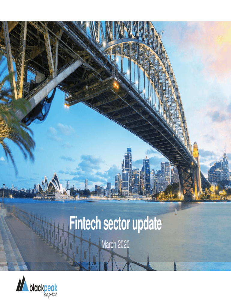 Fintech sector update March 2020Blackpeak is a leading independent investment banking & advisory firm We are an independent corporate advisory firm based in Sydney providing corporate finance and