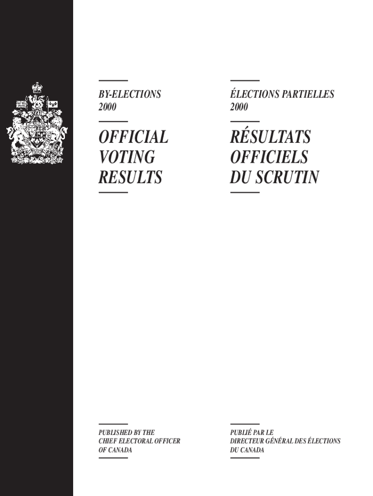 BYELECTIONS 2000LECTIONS PARTIELLES 2000OFFICIAL VOTING RESULTSRSULTATS OFFICIELS DU SCRUTINPUBLISHED BY THE CHIEF ELECTORAL OFFICER OF CANADAPUBLI PAR LE DIRECTEUR GNRAL DES LECTIONS DU CANADAFor
