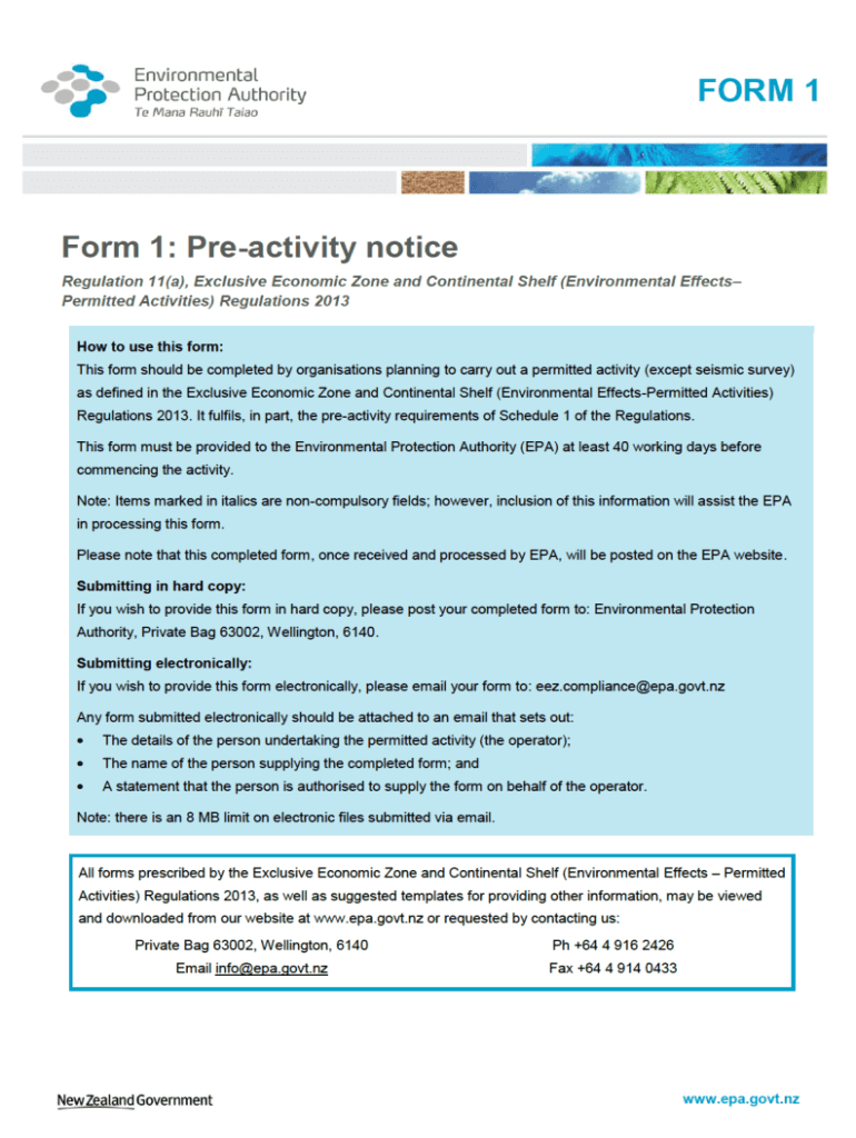 2 Exclusive Economic Zone and Continental Shelf (Environmental Effects Permitted Activities) Regulations 2013 Form 1: Preactivity noticeOperation name: Name used by operator to reference the activity