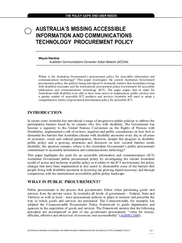 THE POLICY GAPS: END USER NEEDSAUSTRALIAS MISSING ACCESSIBLE