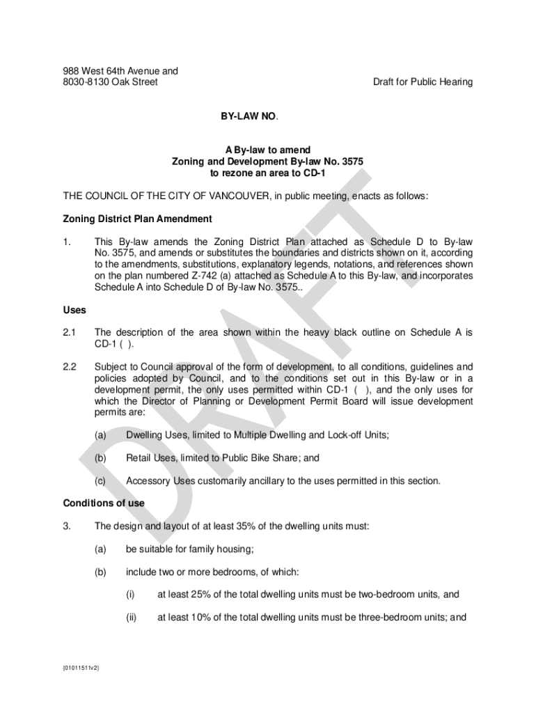 988 West 64th Avenue and 80308130 Oak StreetDraft for Public HearingBYLAW NO.A Bylaw to amend Zoning and Development Bylaw No. 3575 to rezone an area to CD1 THE COUNCIL OF THE CITY OF VANCOUVER, in