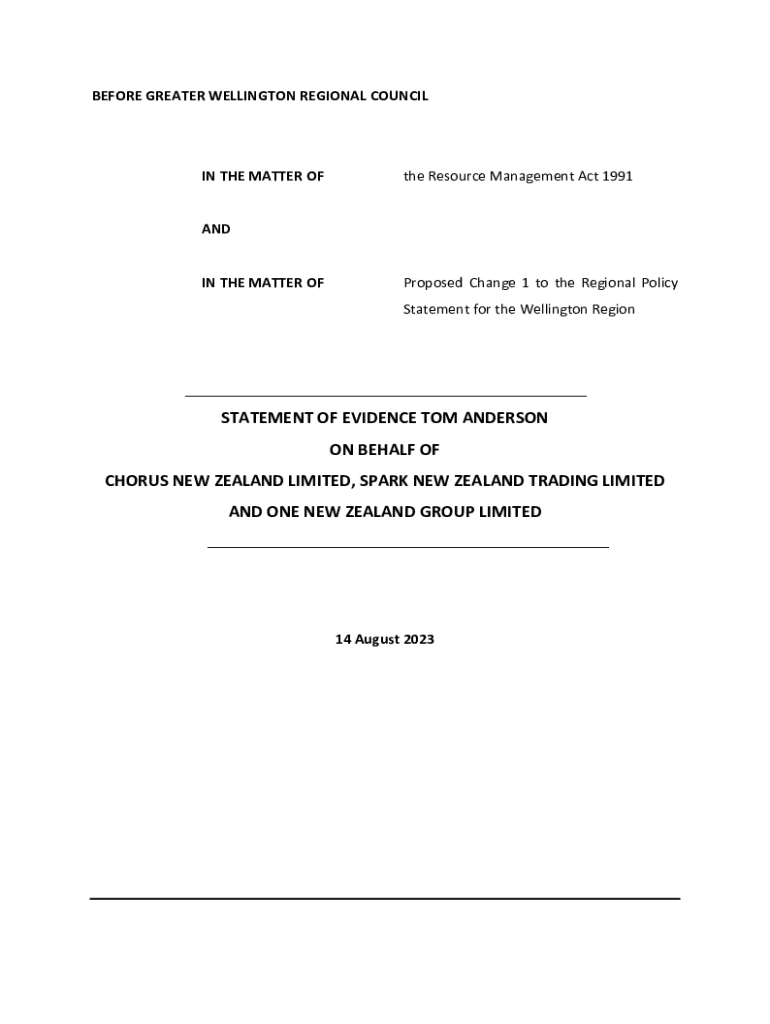 IN THE MATTER Proposed Change 1 to the Regional Policy