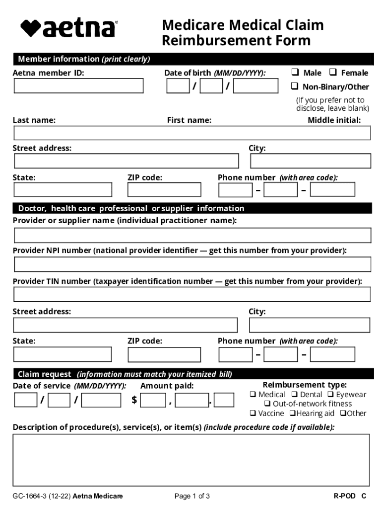 Get the free Aetna - Medicare Medical Claim Reimbursement Form