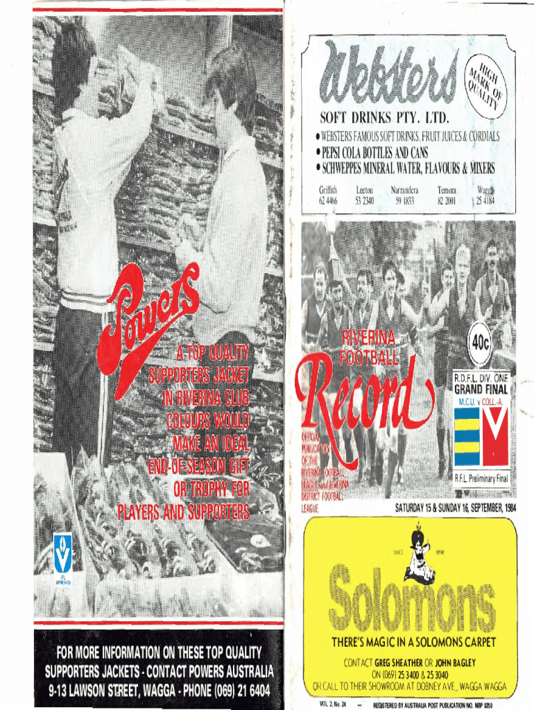 \'tt \' ..\"\'SOFT DINKS PTY. LTD. f WEBSTERS FAMOUS SOF DRINKS. FRUIT JUICES & CORDIALS PEPSI COLA BOTTLES AND CANS SCHWEPPES MINERAL WATER, FLAVOURS & MIXERS Griffith 62 4466Leeton 53 2340Narrandcra