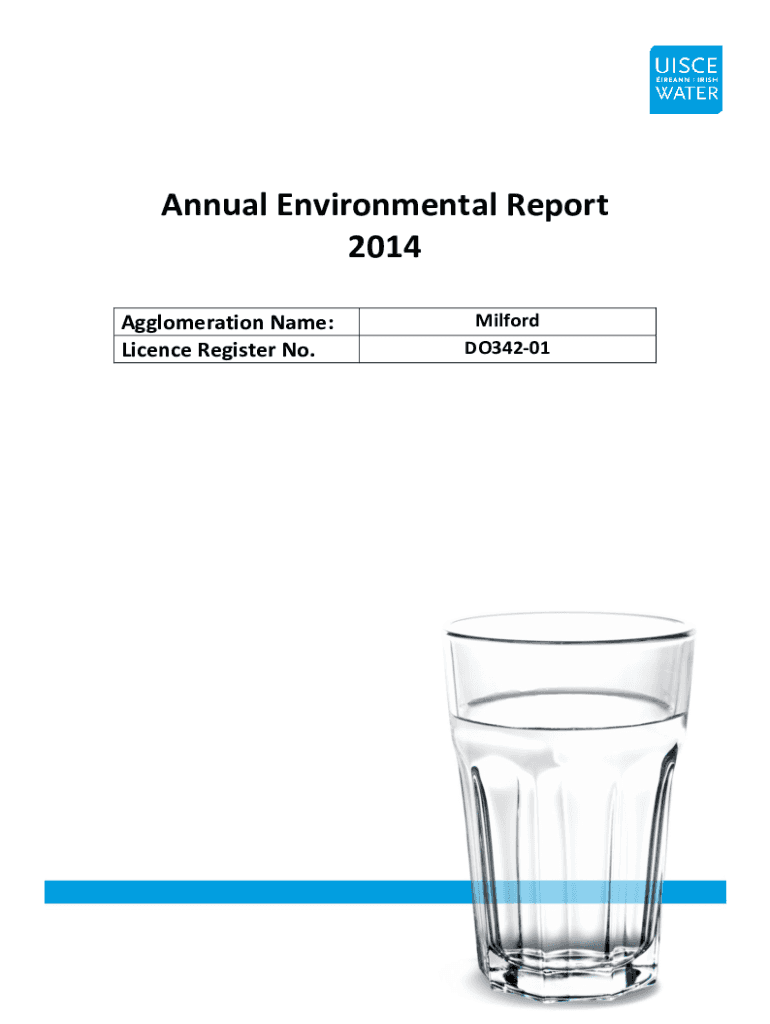 Annual Environmental Report 2014 Agglomeration Name: Licence Register No.Milford DO34201Table of ContentsSection 1. Executive Summary and Introduction to the 2014 AER 1 1.1 Summary report on 2014