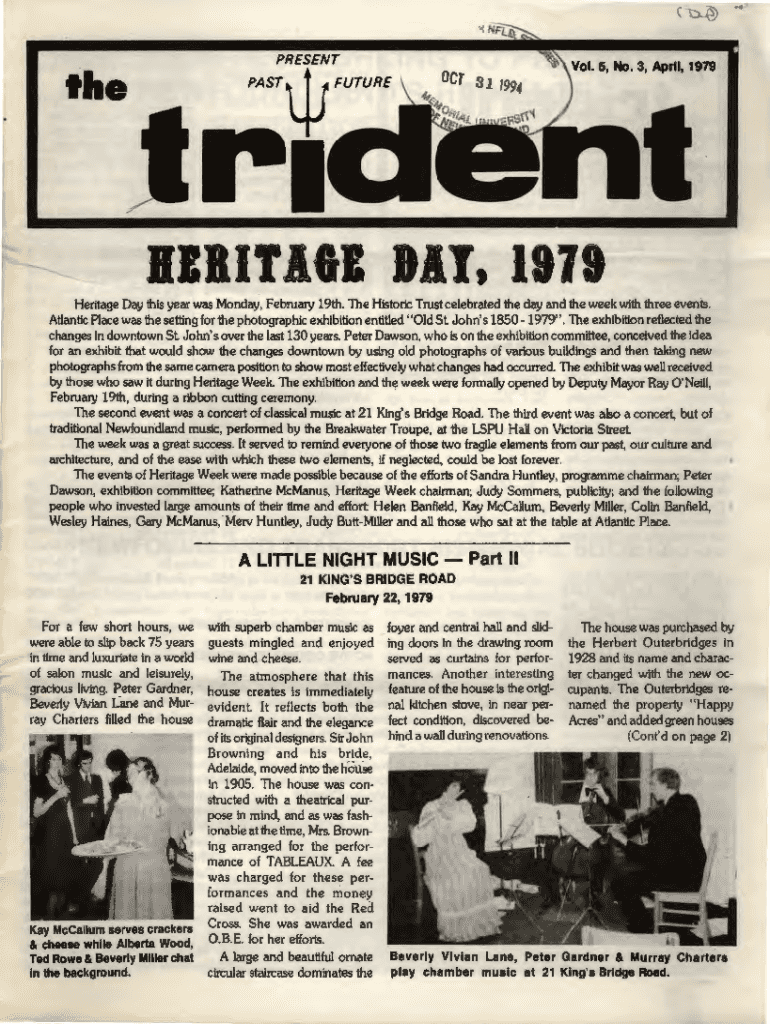 Vol. 5, No.3, April, 1979theIIBIT!tl DIY, 1878 Heritage Day this year was Monday, February 19th. The Historic Trust celebrated the day and the week with three events. Atlantic Place was the setting