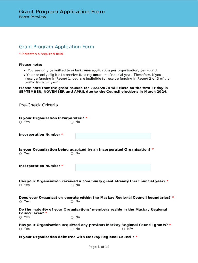 Mackay Regional Council Community is not the form you're looking for?Search for another form here.