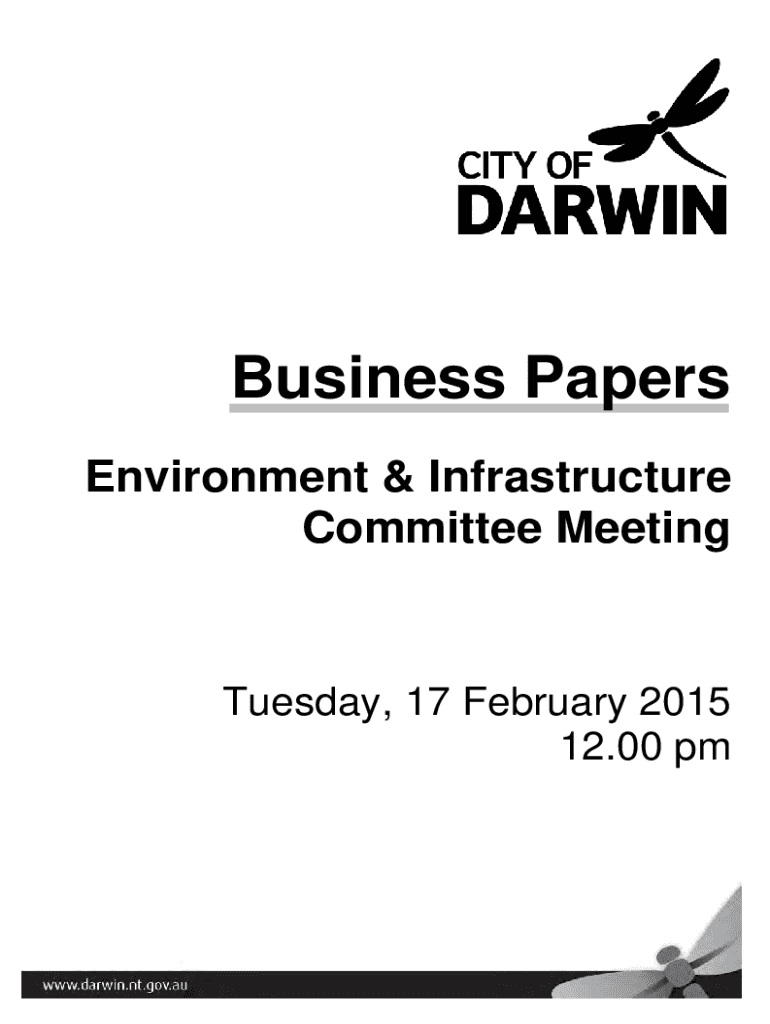 Business Papers Environment & Infrastructure Committee MeetingTuesday, 17 February 2015 12.00 pmNotice of Meeting To the Lord Mayor and AldermenYou are invited to attend an Environment & Infrastructure