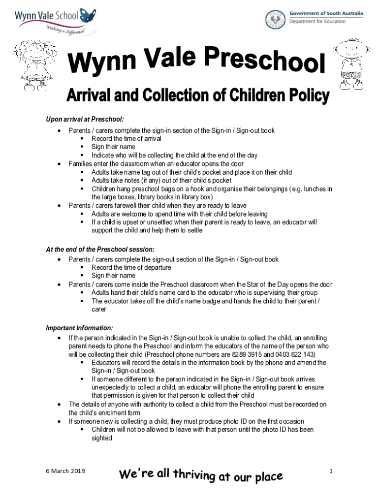 Get the free New - Meadow Lane State Preschool Handbook