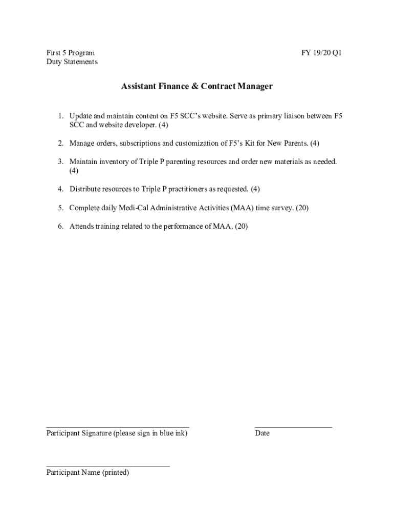 Duty Statements FY 19/20 Q1Assistant Finance & Contract Manager