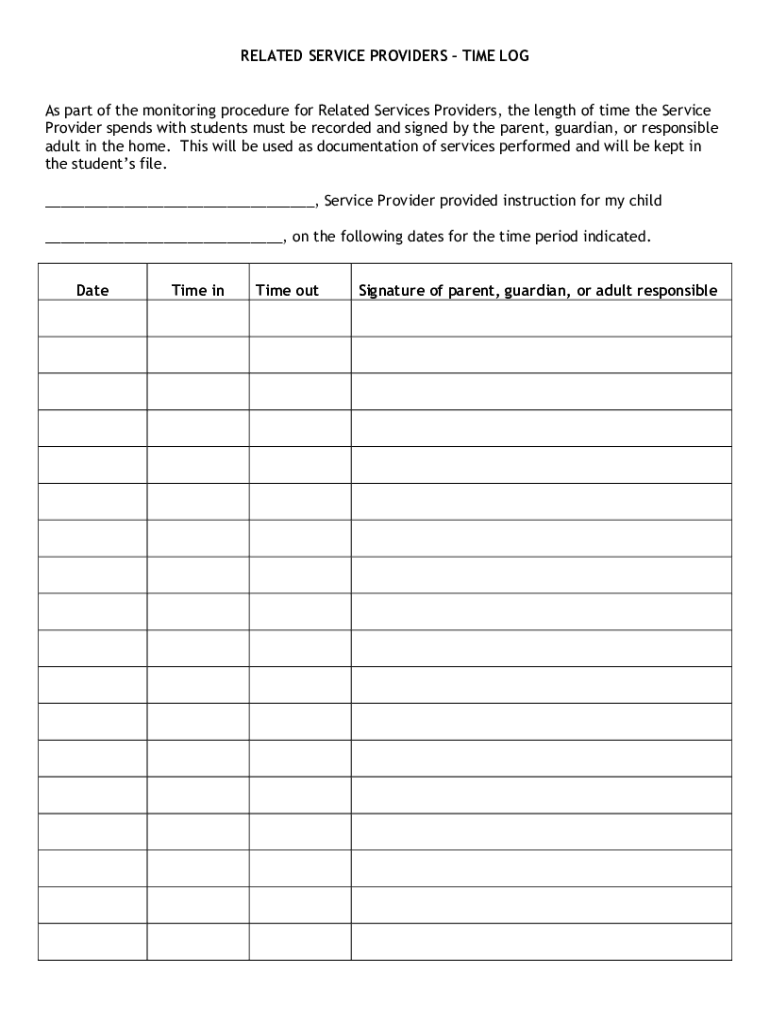 As part of the monitoring procedure for Related Services Providers, the length of time the Service