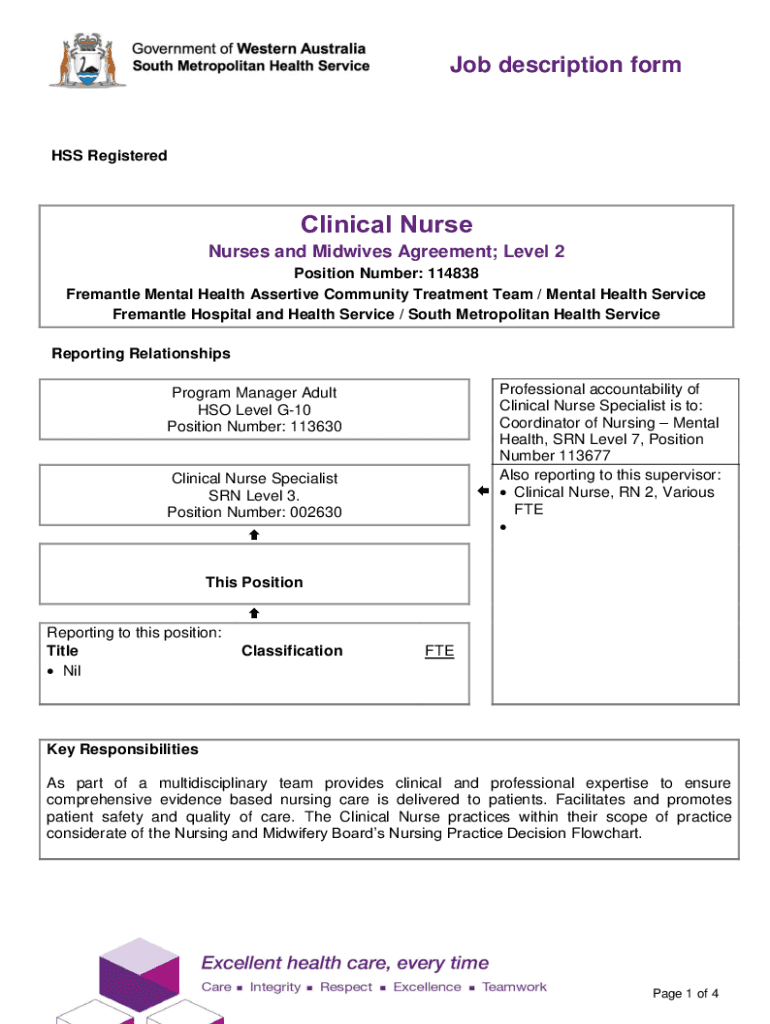 Get the free SMHS Job Description Form Template - Clinical Nurse. Template to be used for all new...