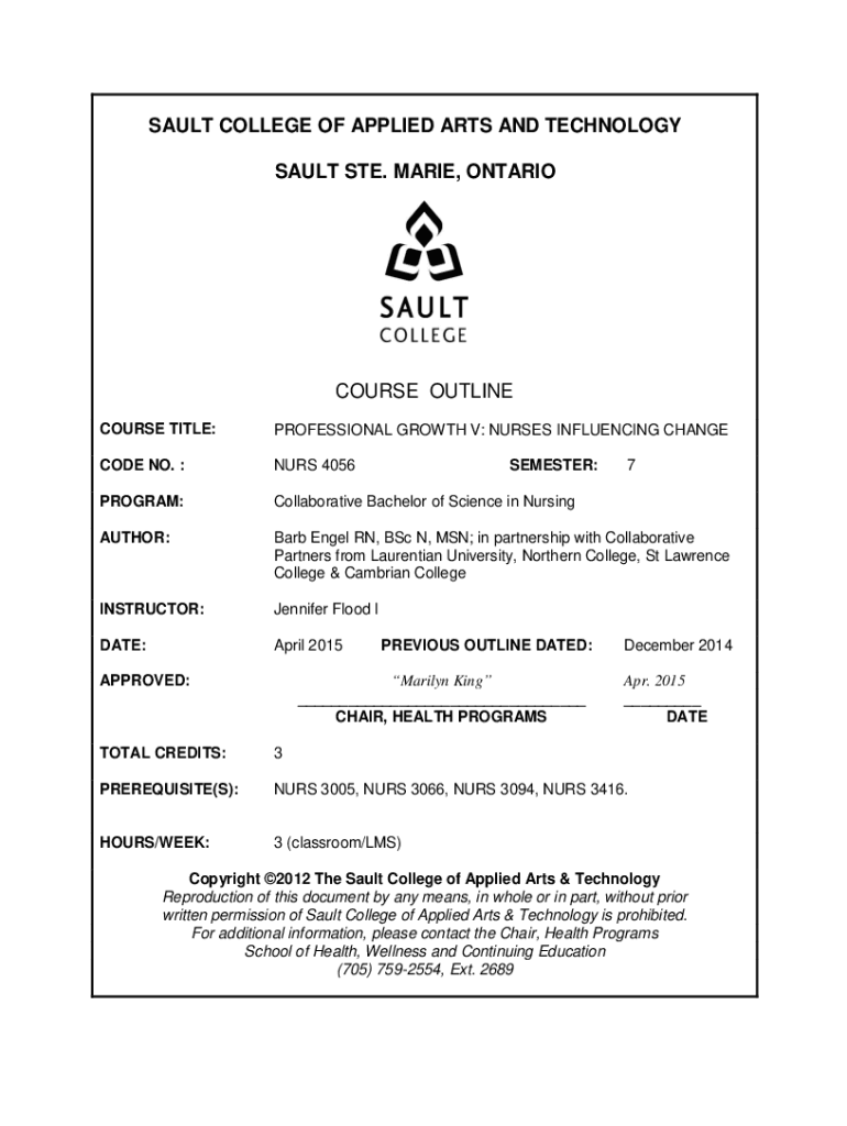 COURSE TITLE:PROFESSIONAL GROWTH V: NURSES INFLUENCING CHANGED NO. NURSE 4056PROGRAM:Collaborative Bachelor of Science