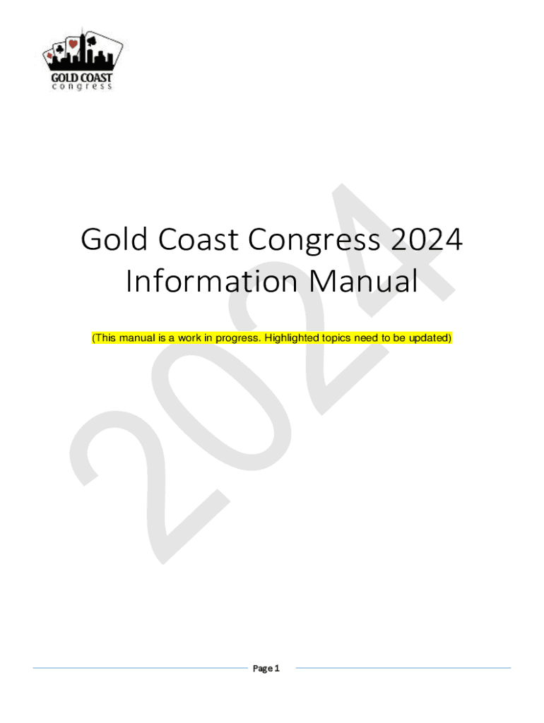 Gold Coast Congress 2024 Information Manual (This manual is a work in progress. Highlighted topics need to be updated)Page 1GOLD COAST CONGRESS INFORMATION MANUALTable of Contents 2024 DATES ....................................................................................................................................