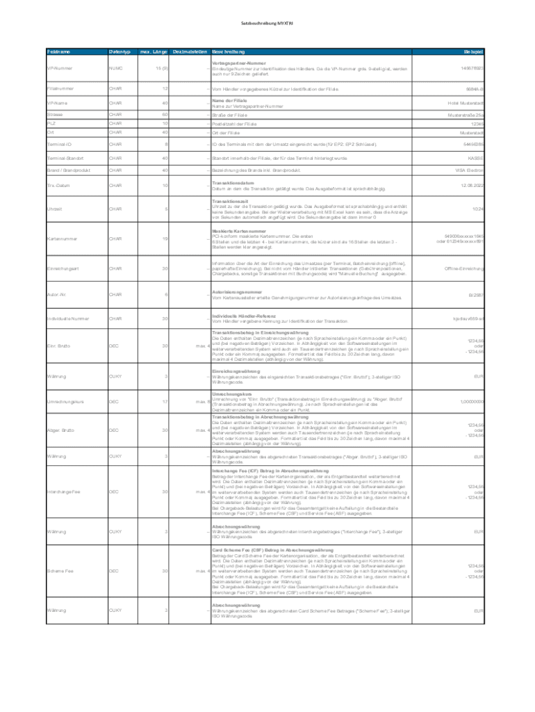 Satzbeschreibung MYXTRIFeldnameDatentypVPNummerNUMC15 (9)FilialnummerCHAR12 Com Handler vorgegebenes Kernel our Identification her Filial.VPNameCHAR40StrasseCHAR60 Straw her FilialePLZCHAR10 Postnatal