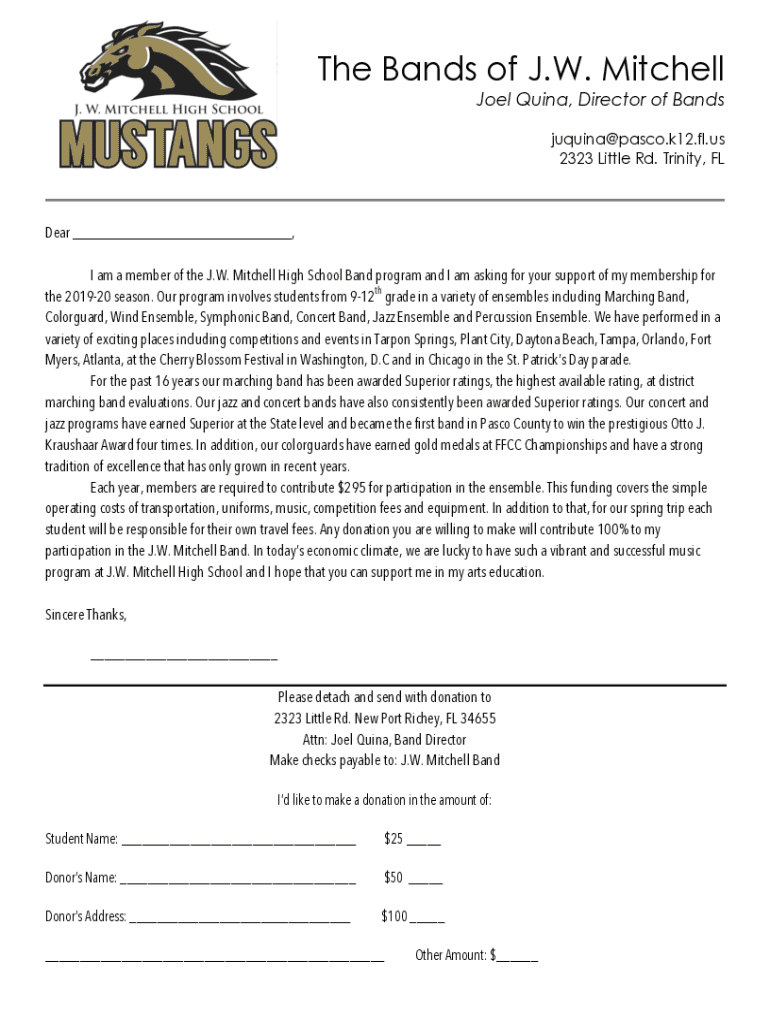 Get the free J.W. Mitchell High School BandDear Marching Mustangs ... - jwmhs pasco k12 fl