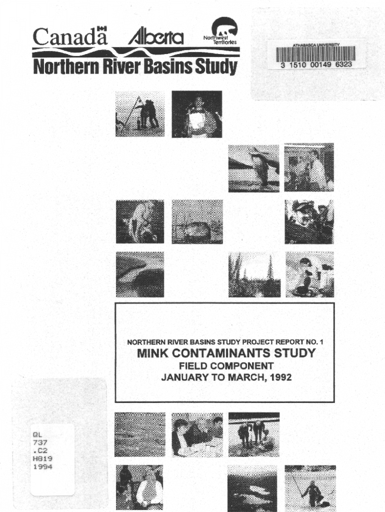 Canada Ahena Northern RiverBasinsStudyATHABASCA UNIVERSITY3 1510 00149 6323%NORTHERN RIVER BASINS STUDY PROJECT REPORT NO. 1MINK CONTAMINANTS STUDY FIELD COMPONENT JANUARY TO MARCH, 1992QL 737 . C2