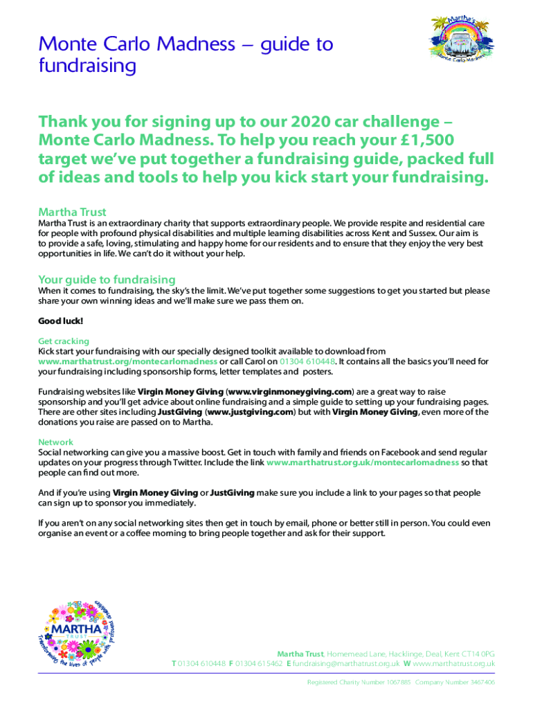 Monte Carlo Madness guide to fundraising Thank you for signing up to our 2020 car challenge Monte Carlo Madness. To help you reach your 1,500 target weve put together a fundraising guide, packed full