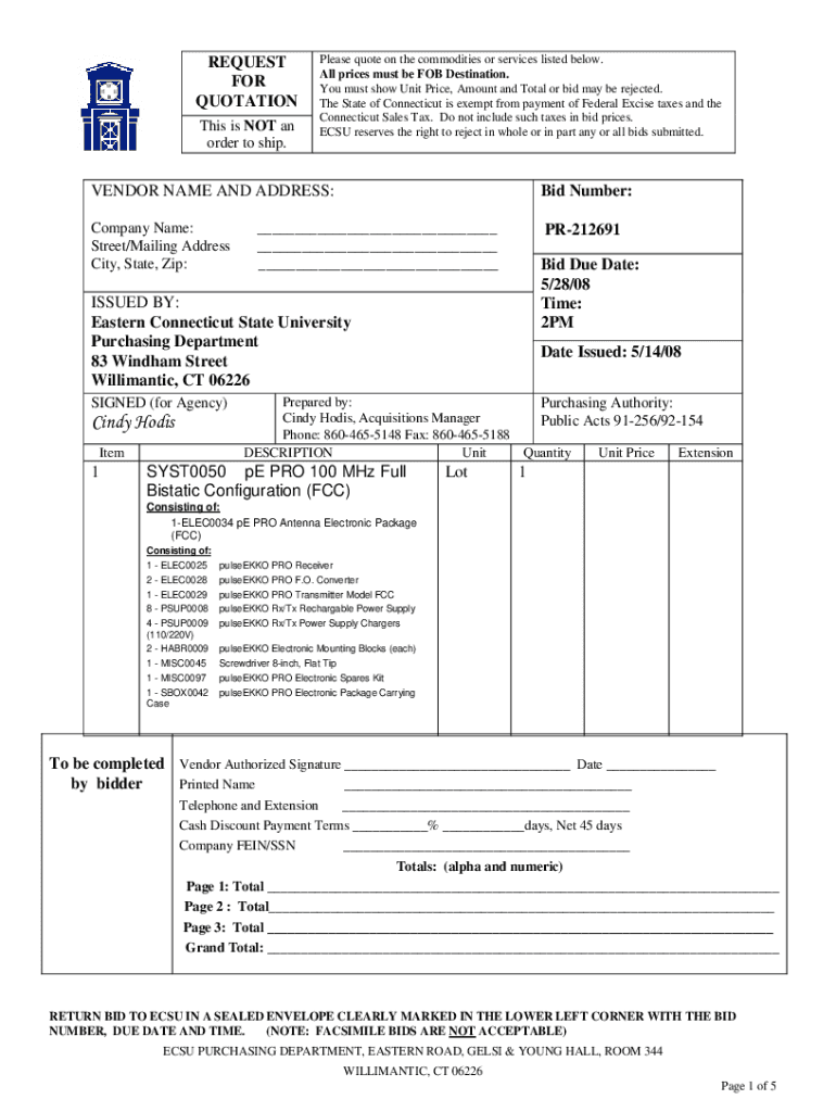 REQUEST FOR QUOTATION This is NOT an order to ship.Please quote on the commodities or services listed below. All prices must be FOB Destination. You must show Unit Price, Amount and Total or bid may