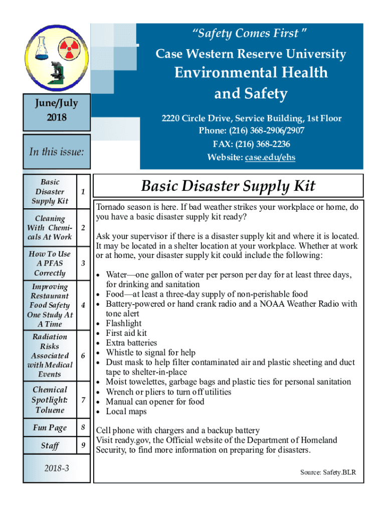 Safety Comes First Case Western Reserve UniversityEnvironmental Health and SafetyJune/July 20182220 Circle Drive, Service Building, 1st Floor Phone: (216) 3682906/2907 FAX: (216) 3682236 Website:
