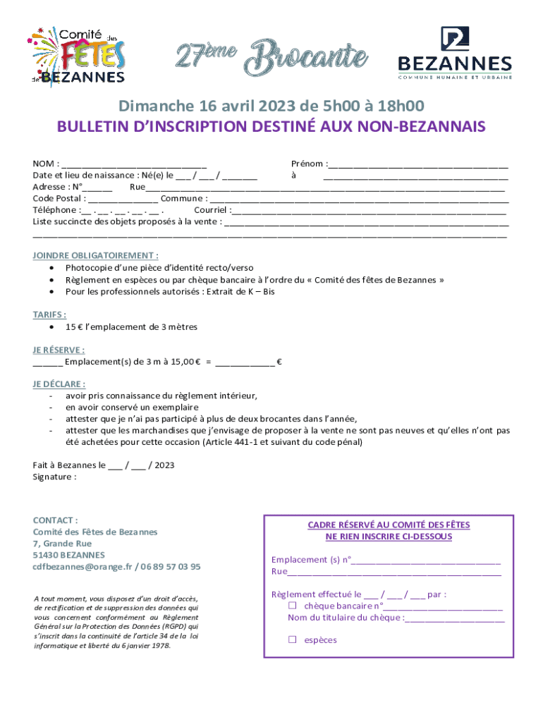 To fill out the bulletin d'inscription destiné aux, follow these steps: