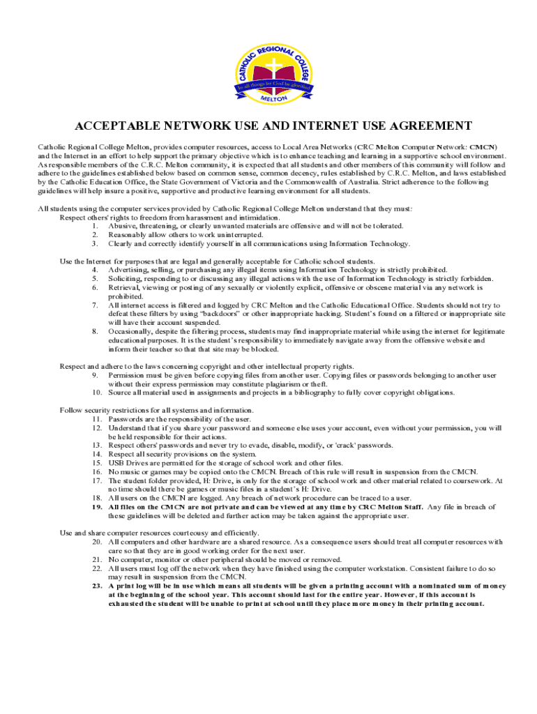 Get the free Acceptable Network Use and Internet Use Agreement.docx