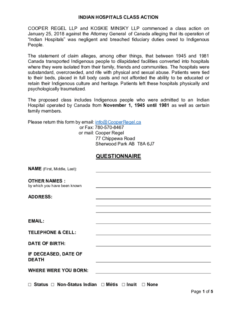 Get the free NOTICE: Class action against Attorney General of Canada re