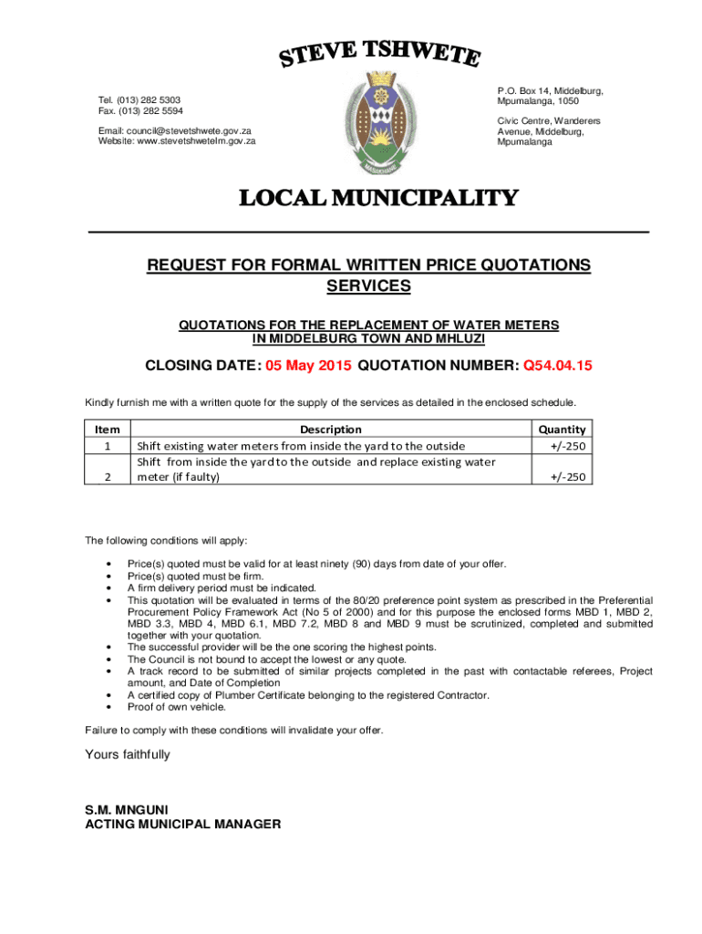 Get the free QUOTATIONS FOR THE REPLACEMENT OF WATER METERS