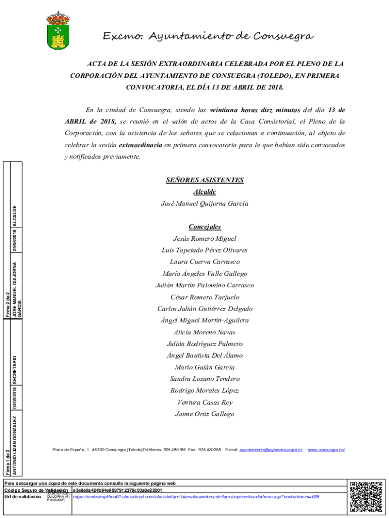 CORPORACIÓN DEL AYUNTAMIENTO DE CONSUELA (TOLEDO), EN PRIMER