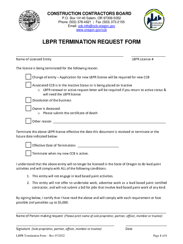www.oregon.gov/ccbLBPR TERMINATION REQUEST FORM