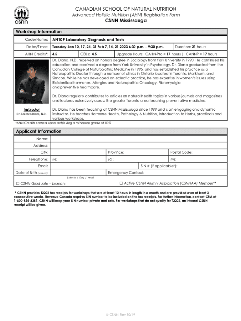 Advanced Holistic Nutrition (AHN) Registration Formosan Mississauga