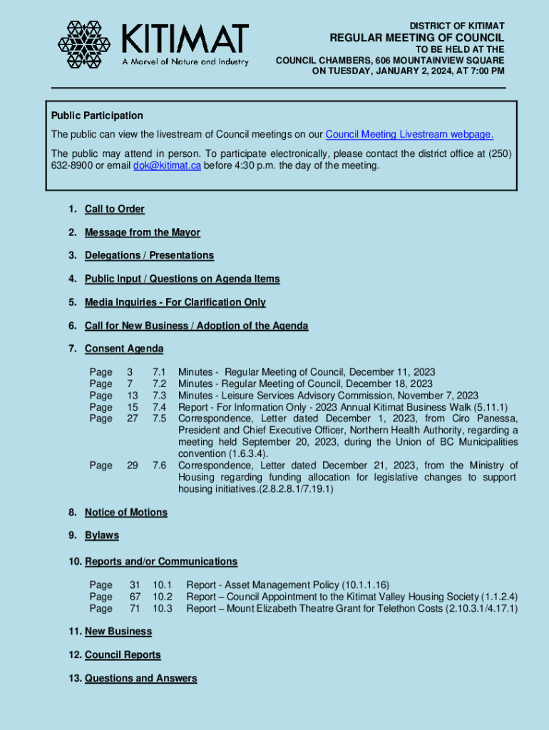DISTRICT OF KITIMATREGULAR MEETING OF COUNCIL