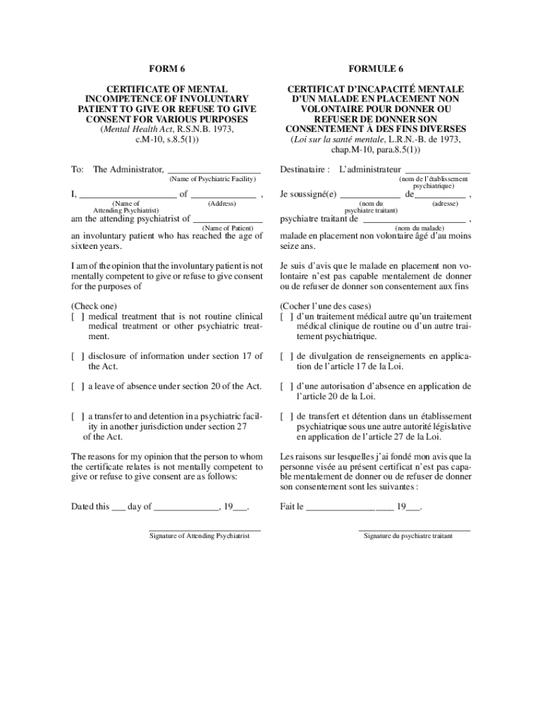 Obtenir le gratuit form 6 certificate of mental incompetence of involuntary ...
