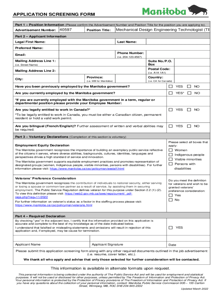 Part 1 Position Information (Please confirm the Advertisement Number and Position Title for the position you are applying to).
