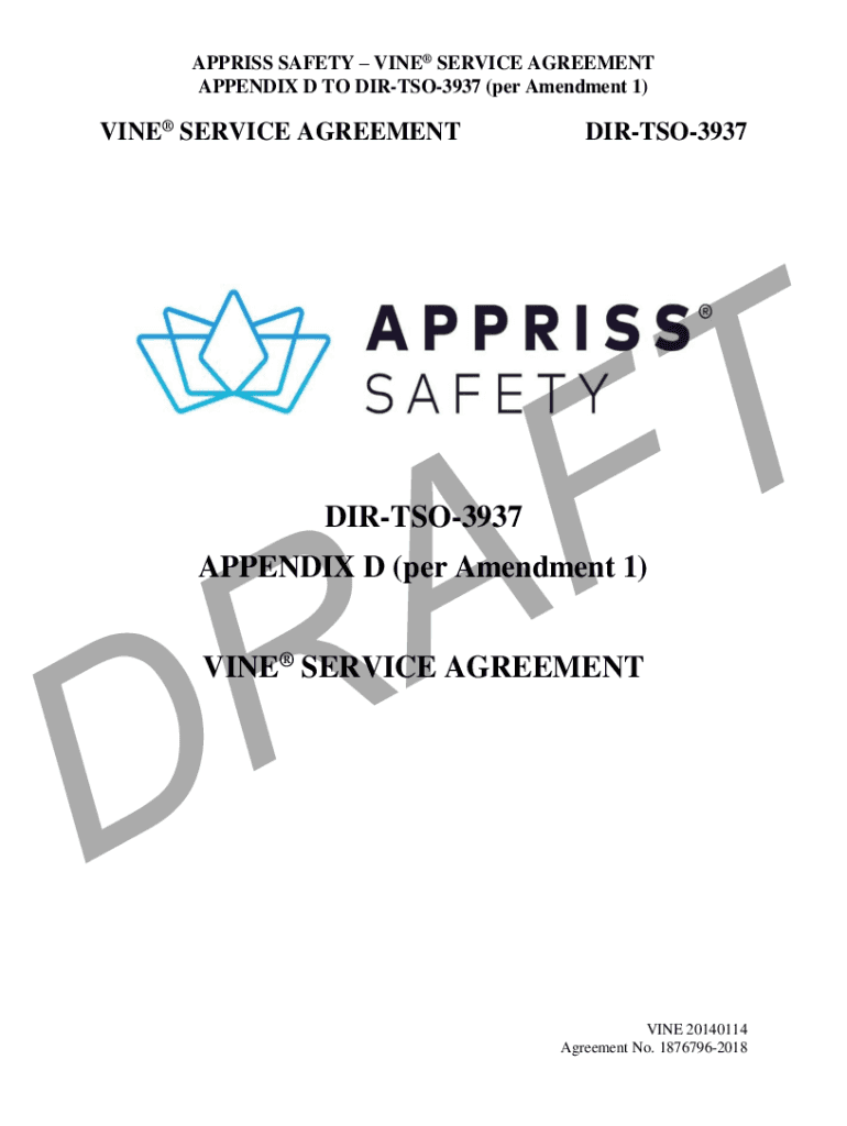 APPRISE SAFETY VINE SERVICE AGREEMENT
