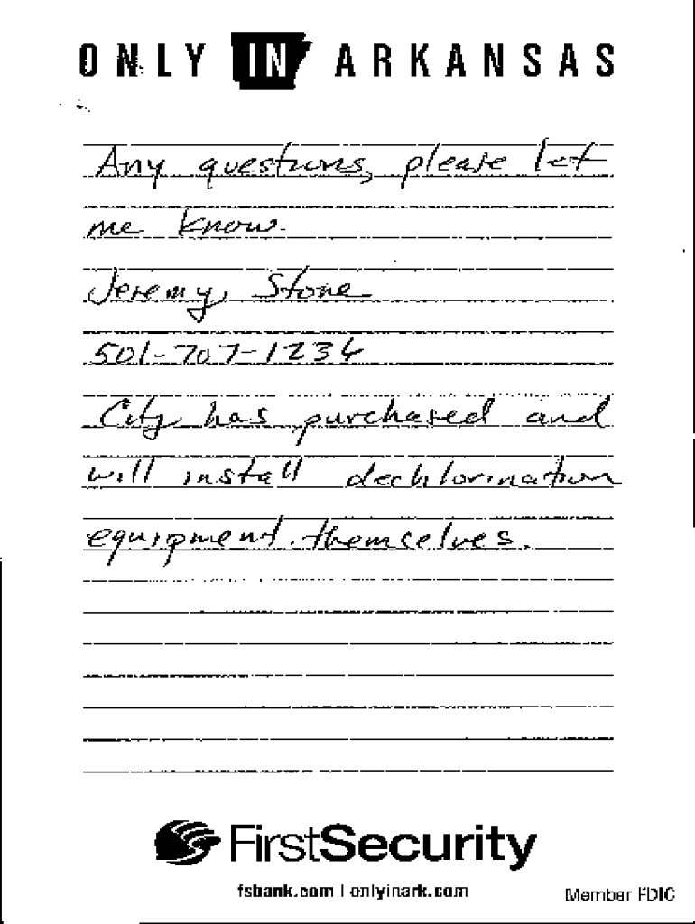 ONLYARKANSAS&L: ft) ffltLL2L 1 & 7ai34Jiffi p i eJ f 1 4 v t,i1/7)] 7 L SI cti ( L 7 cIi /o L cFirstSecurity fsbank.com I onlyinark.cornMember FDIC,.Oty 1DescriptionRegalDirect1Chlorinator, 50 ppdCylinder,