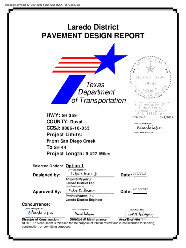 DocuSign Envelope ID: 98044E9BFEE14226B2CA165FC583C306Laredo District PAVEMENT DESIGN REPORT Texas Department of Transportation HWY: SH 359 COUNTY: Duval CCS: 008610053 Project Limits: From San Diego
