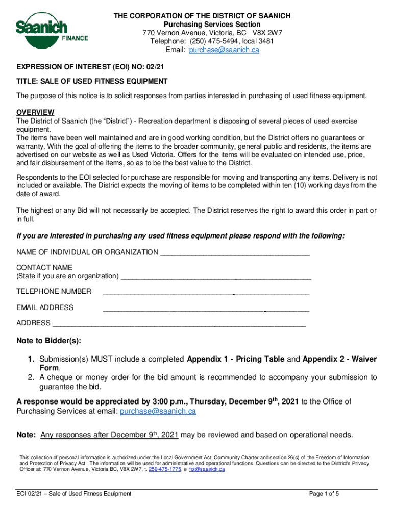 Get the free Online CORPORATION OF THE DISTRICT OF SAANICH ...